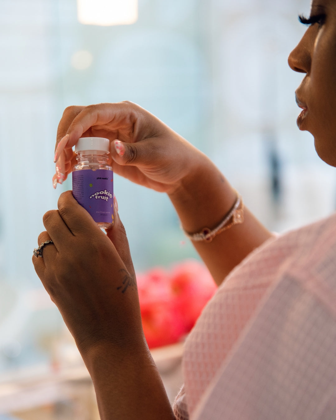 Twist open your bottle of Nookie Fruit and remove one capsule.